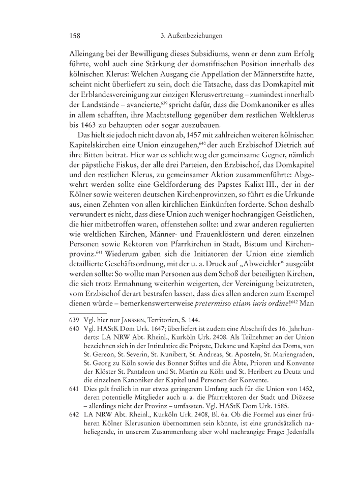 3. Die Außenbeziehungen des Kölner Domkapitels