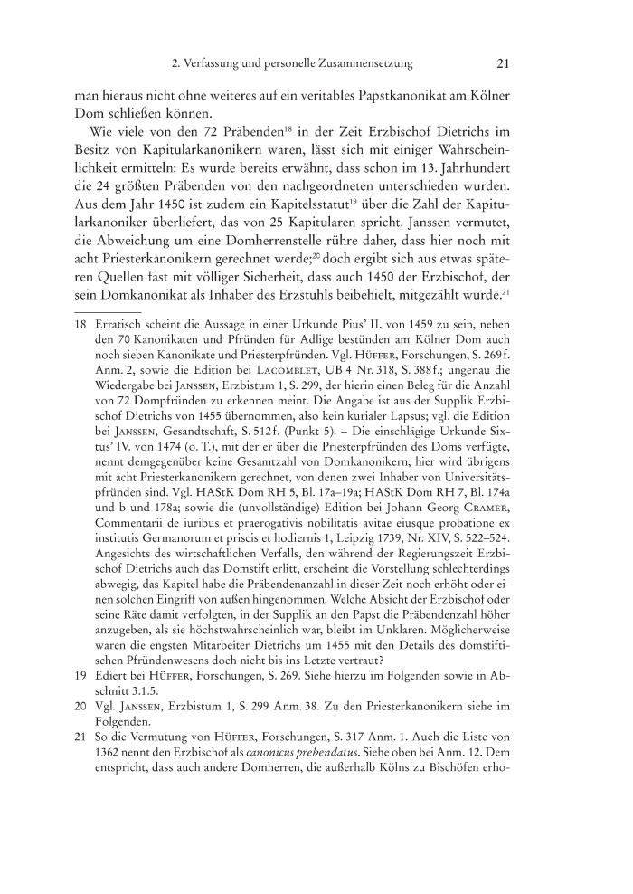 2. Zur Verfassung und personellen Zusammensetzung des Kölner Domkapitels