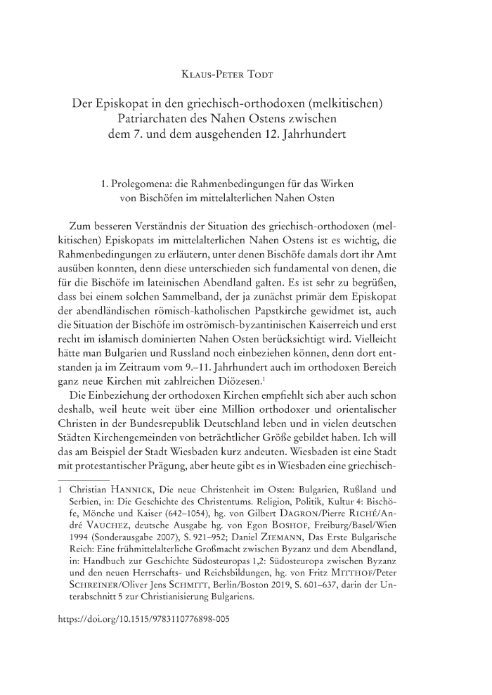 Klaus-Peter Todt, Der Episkopat in den griechisch-orthodoxen (melkitischen) Patriarchaten des Nahen Ostens zwischen dem 7. und dem ausgehenden 12. Jahrhundert