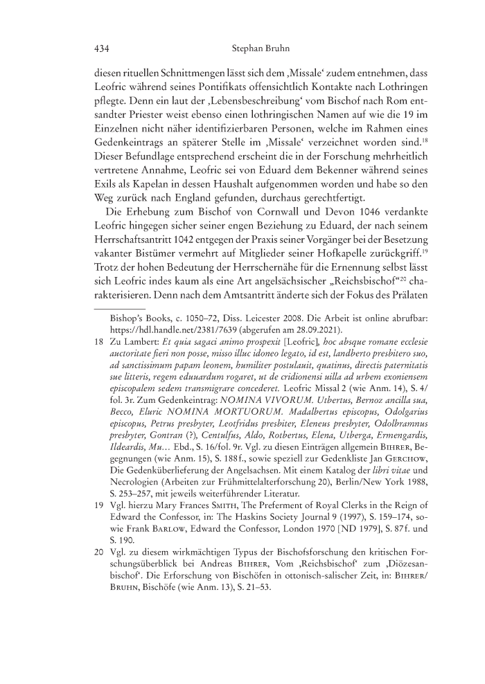 Stephan Bruhn, Zwischen Reformidealen und Pragmatik. Bischof Leofric († 1072) und die Neuordnung der südenglischen Bistumstopographie im 10. und 11. Jahrhundert