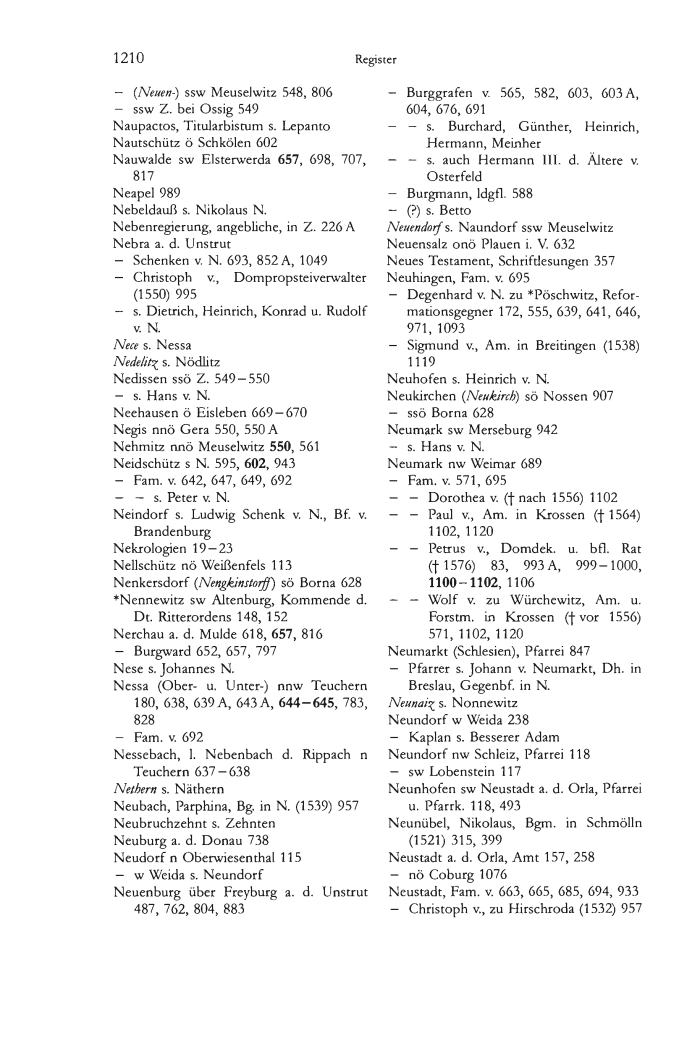 NF 35 - Heinz Wiessner, Das Bistum Naumburg 1,1–2: Die Diözese (Germania Sacra N. F. 35,1–2), Berlin/New York 1997/1998.